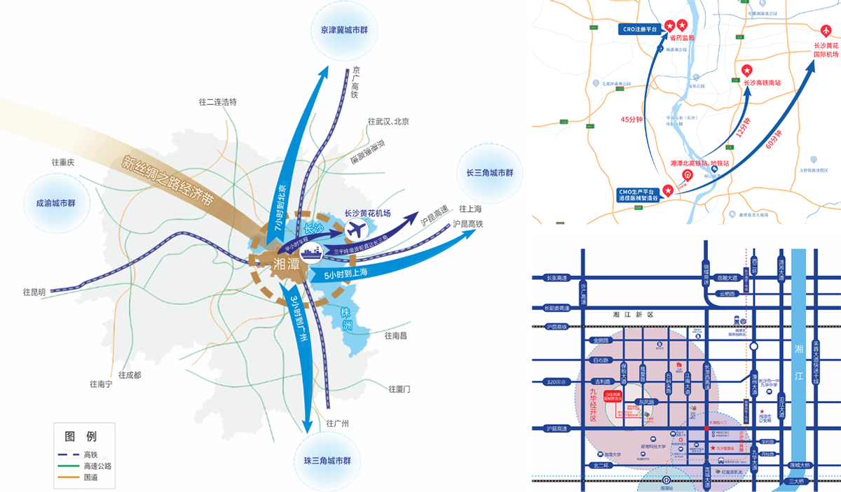 近(交通便利)平台距离湘潭北高铁站仅十五分钟车程,距离湖南省药品监督管理局仅四十五分钟车程,距离长沙黄花机场一个小时车程,湘潭北高铁到长沙南站仅需十二分钟;高铁湘潭北站、长沙南站及长沙黄花机场可通达全国,交通便利。