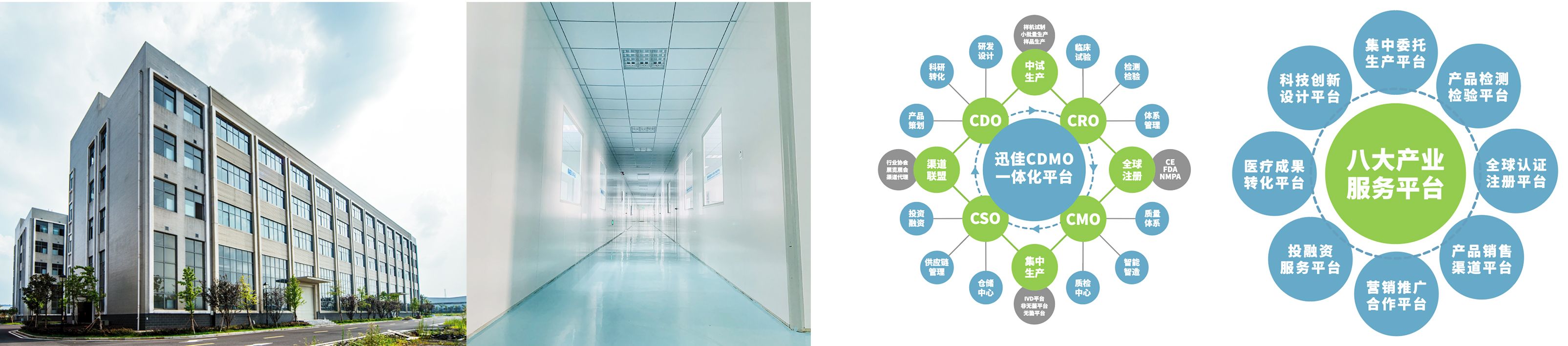 依托CDO+CRO+CMO+CSO一体化平台,链接政、产、学、研、医、用、金、介、贸、媒等医疗产业要素,为医疗行业解决投资难、研发难、转化难、生产难、销售难、监管难等“六难问题”提供新方案,为医疗行业突破研发转化门槛高、市场准入门槛高和产品销售门槛高等“三高门槛”提供新路径。