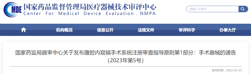为进一步规范腹腔内窥镜手术系统的管理,国家药监局器审中心组织制定了《腹腔内窥镜手术系统注册审查指导原则 第1部分:手术器械》,现予发布。