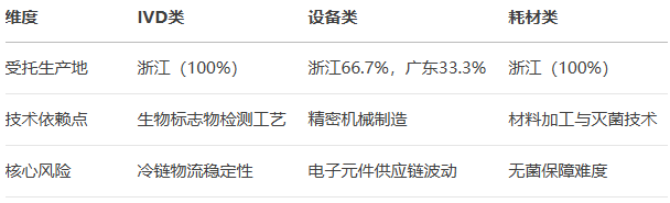 核心发现:100%产品委托外省生产,长三角(浙江)占比77.8%,珠三角(广东)占11.1%,凸显沿海地区高端制造优势。