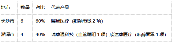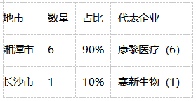湘潭市:IVD 6个(85.7%),设备1个(7%)