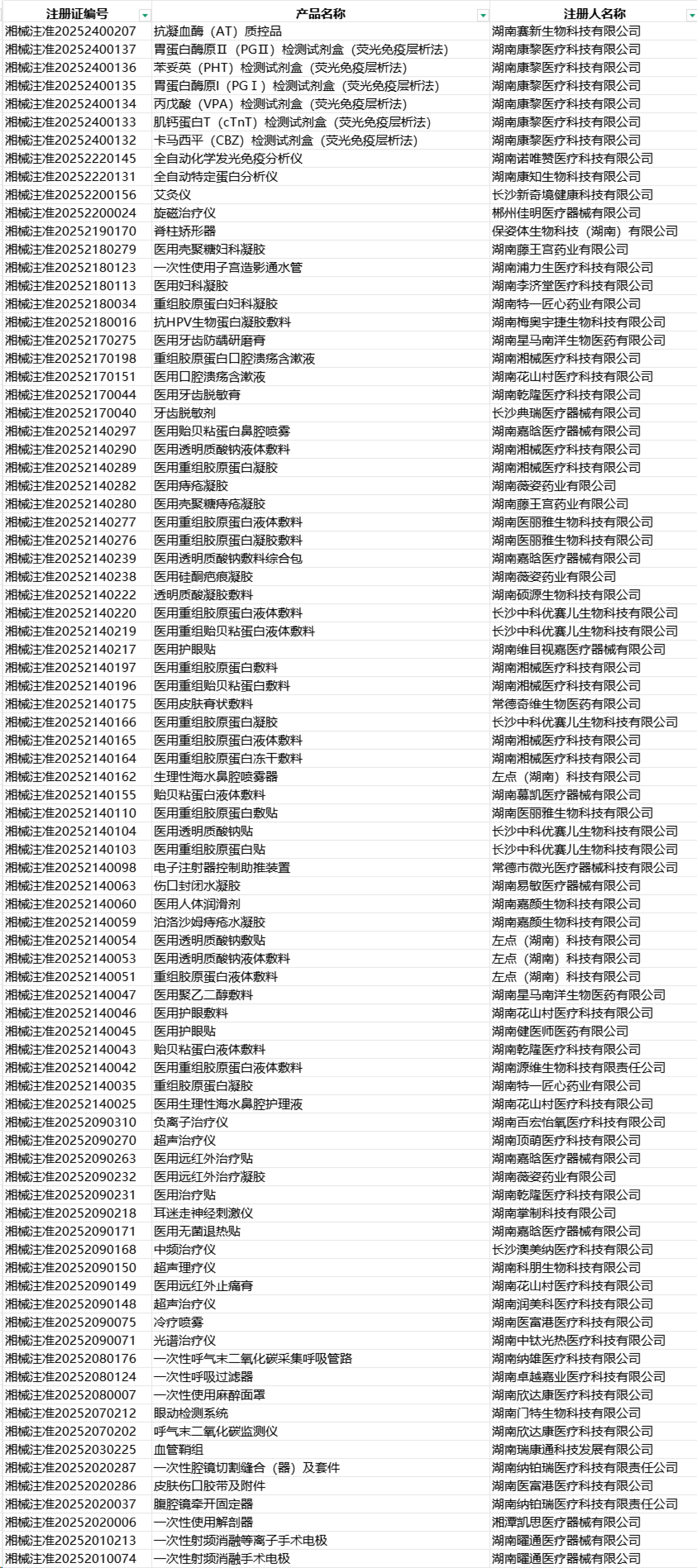 根据湖南省药品监督管理局2025年1-3月发布的医疗器械注册数据,共新增85个二类医疗器械注册证,涉及48家注册人企业。