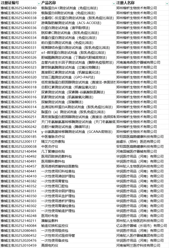2025年上半年注册人制度下,河南省二类医疗器械产业呈现 “郑州主导、多地协同” 格局:郑州市以IVD试剂为绝对核心,楷析生物成为全省产能支柱;安阳市深耕中医器械细分领域,灸疗设备具创新性;新乡-长垣产业带专注敷料与耗材包,依托华润、驼人等企业形成集群优势。