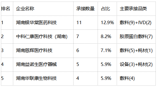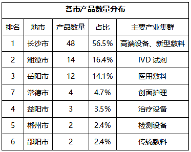 长沙市:敷料27个(57.4%),设备10个(71.4%)