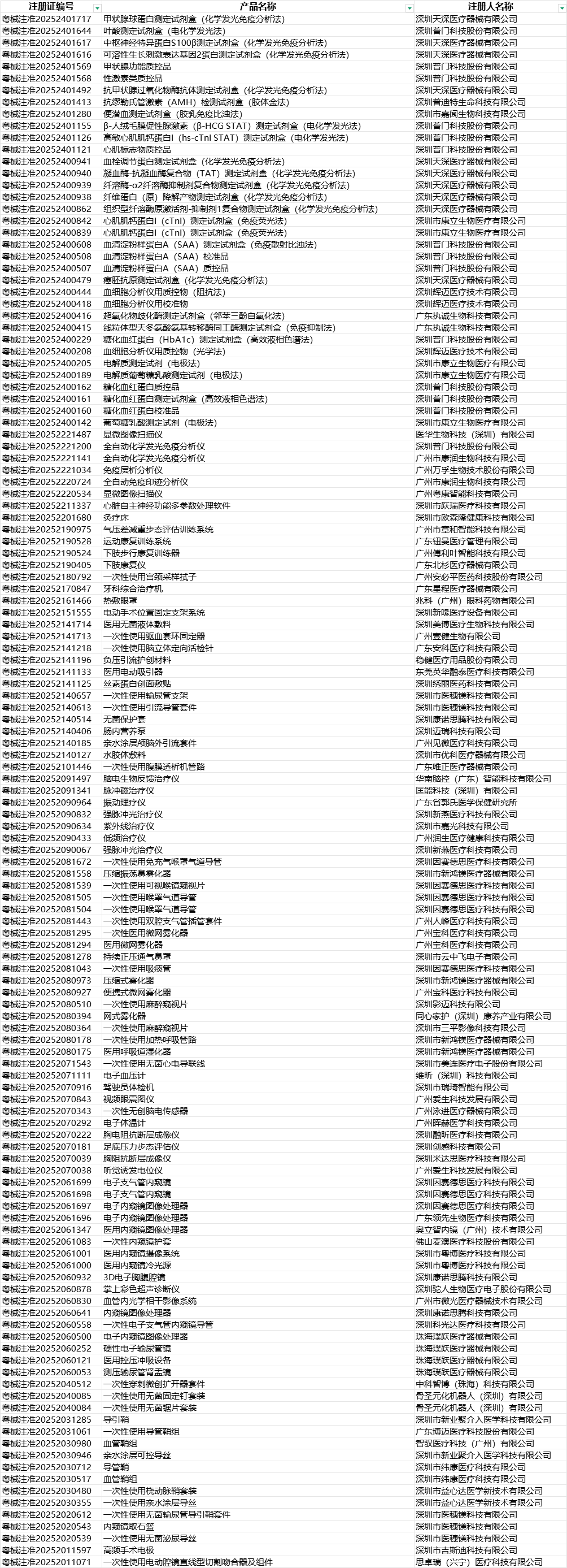 深圳作为研发与注册中心,贡献近七成注册证,尤其在化学发光试剂、高端影像设备、电生理器械等高附加值领域形成集群优势;广州在康复器械、内窥镜系统、呼吸治疗设备等领域形成特色;珠海、佛山、东莞、梅州等地在介入耗材、电子内窥镜生产等领域提供补充。